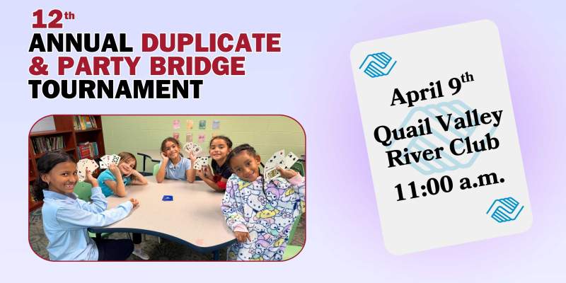 Join us for our 12th Annual Duplicate & Party Bridge Tournament on April 9th, 2026!
